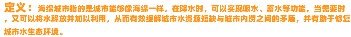 1.社會意義:城市像海綿一樣,下雨時吸水、蓄水、滲水、凈水,需要時將蓄存的水"釋放"并加以利用。將自然途徑與人工措施相結合,在確保城市排水防澇安全的前提下,實現(xiàn)雨水在城市區(qū)域的積存、滲透和凈化,促進雨水資源的利用和生態(tài)環(huán)境保護。